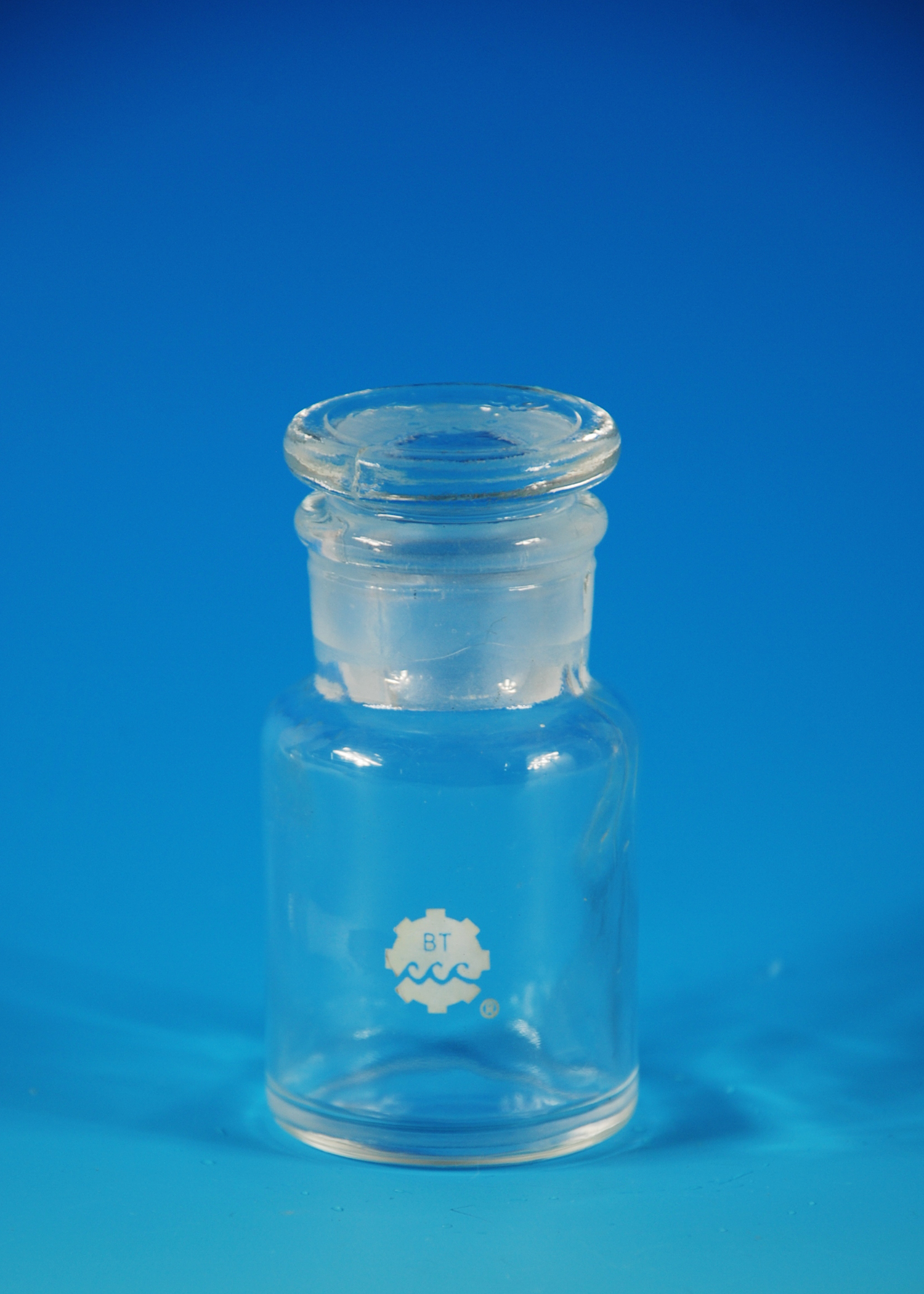 用于盛放石蕊、酚酞溶液。透明钠钙玻璃制,瓶口细磨,磨砂面应均匀细腻,滴管应附橡胶帽,吸放弹性好,开口直径 6 mm,与滴管口套合牢固稳定。规格:白色、60ml。技术要求: 为无色滴瓶。与滴管配合使用。外形尺寸要求:瓶身高63±5mm,瓶口高15±1.5mm,瓶身外径44±2mm,瓶口外径18±2mm,瓶身厚1mm,滴管全长90±5mm,滴管厚1mm。