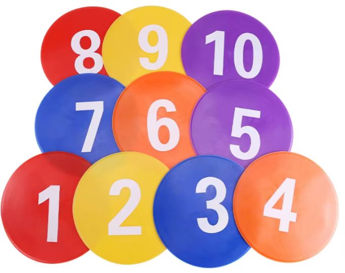 环保数字标志垫,可用于教学与游戏、及队形排练标识等,也可以用于足球训练,训练灵敏度及平衡性。1-10为一套,彩色或者单色可选。