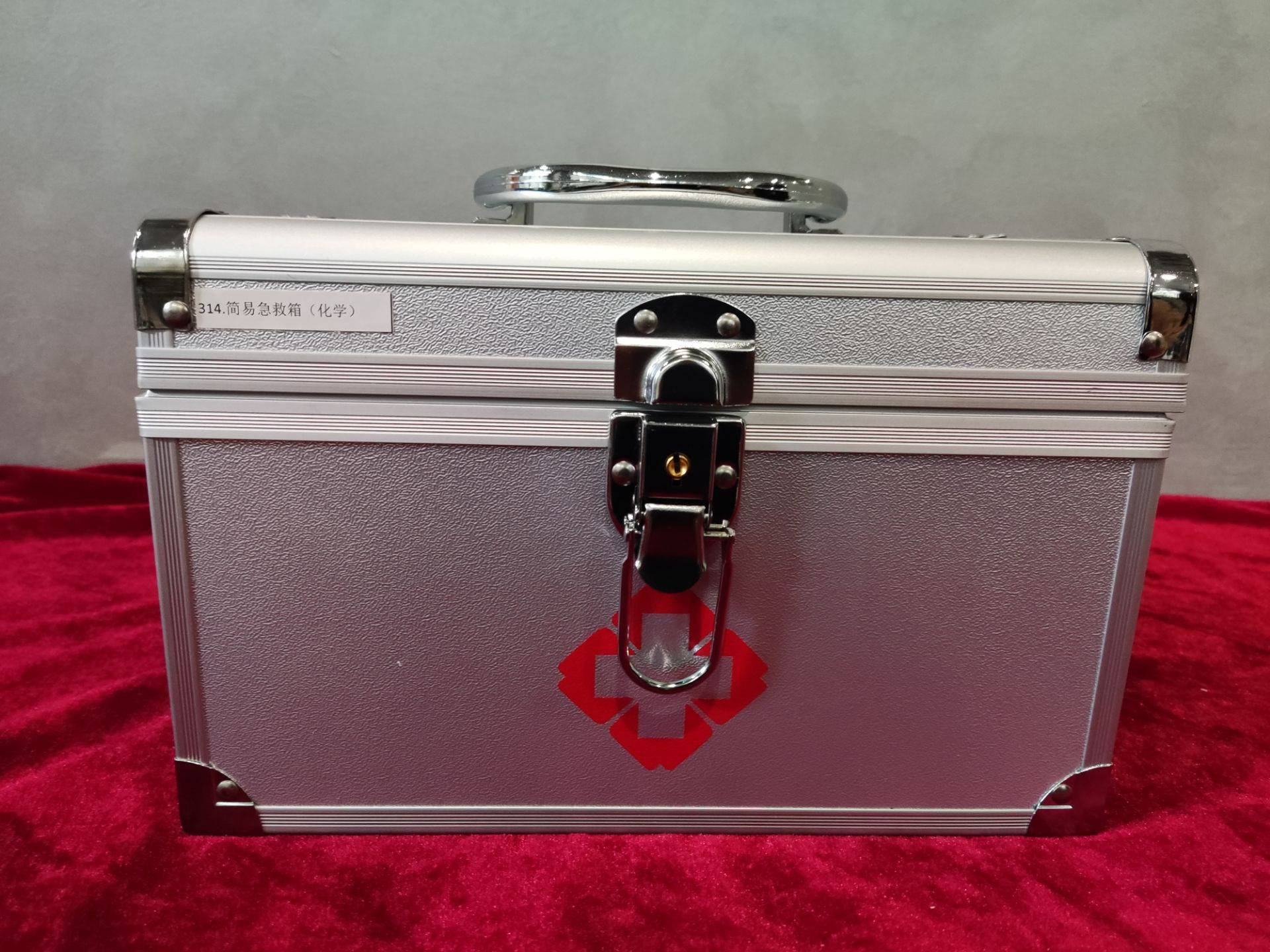 箱体采用中号铝合金材质。急救箱内应配备以下药品及器材:苏打粉、硼酸、医用酒精、创可贴、紫药水、碘伏、3%双氧水、胶布、绷带、药棉、手术剪、镊子、止血带、消炎粉、灼伤药、甘油等
